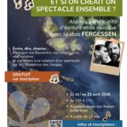 A travers ces rencontres conviviales et créatives, ouvertes à toutes et à tous, nous vous invitons à venir créer à nos côtés et partager vos ressentis, vos souvenirs, vos visions, vos récits et autres anecdotes susceptibles de nourrir la réflexion et l’écriture de ce spectacle, qui verra le jour à la fin de l’été 2026.